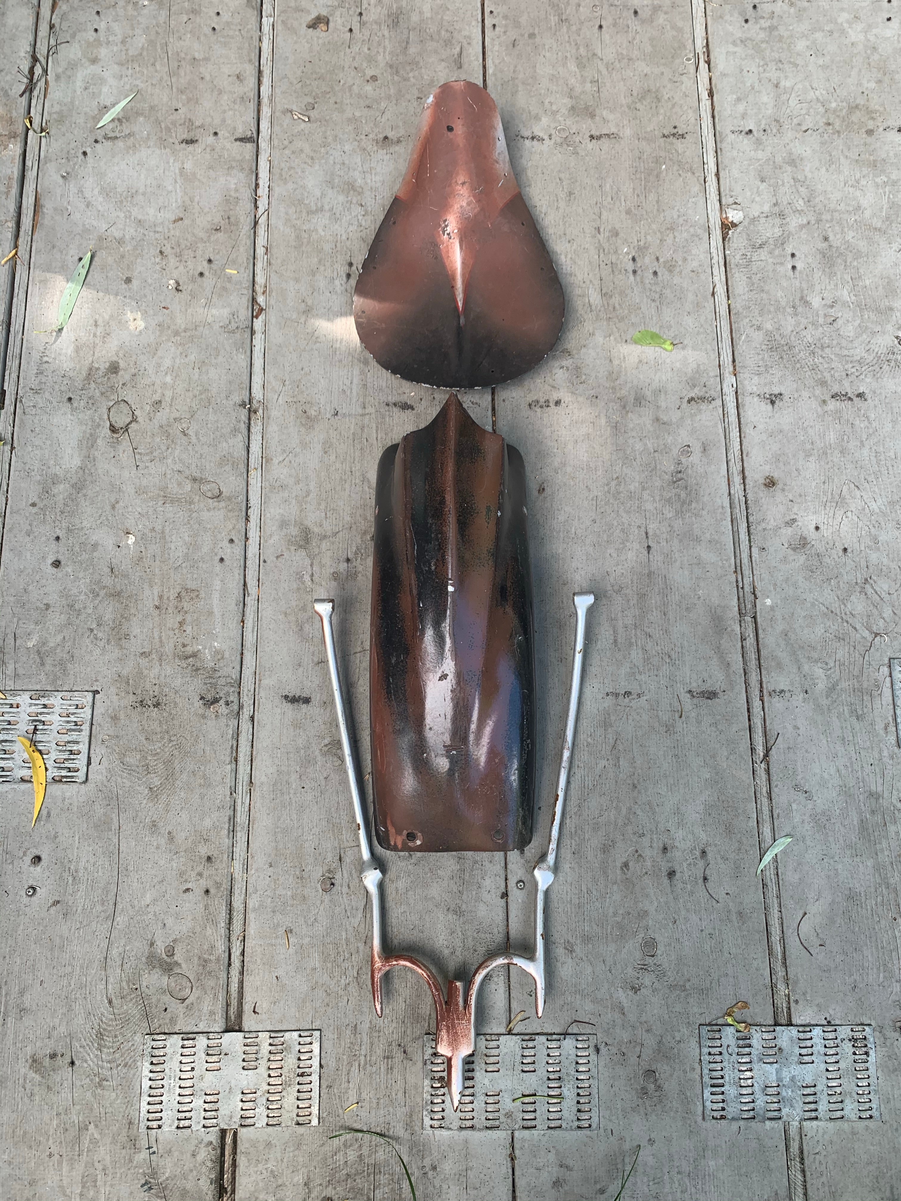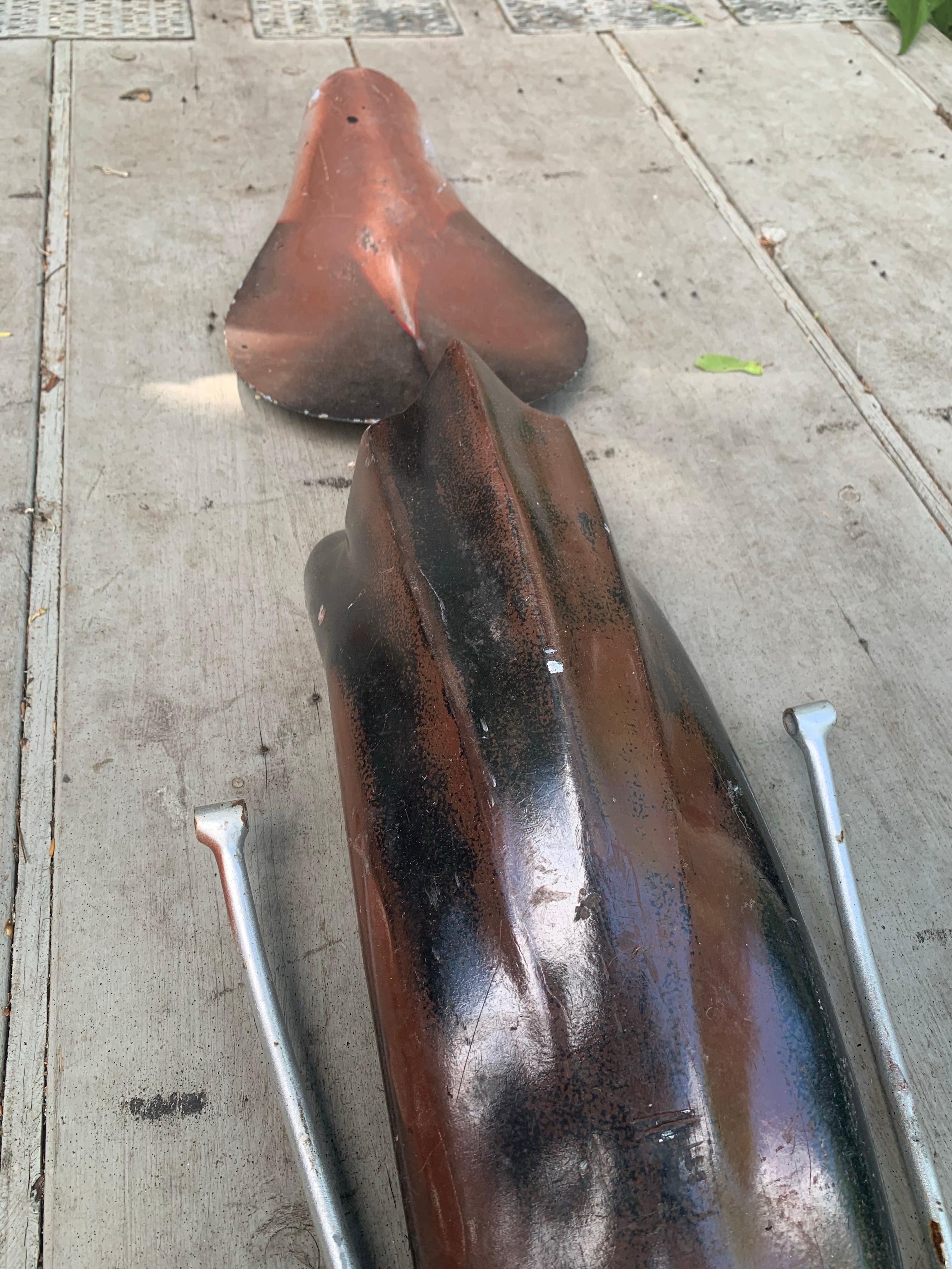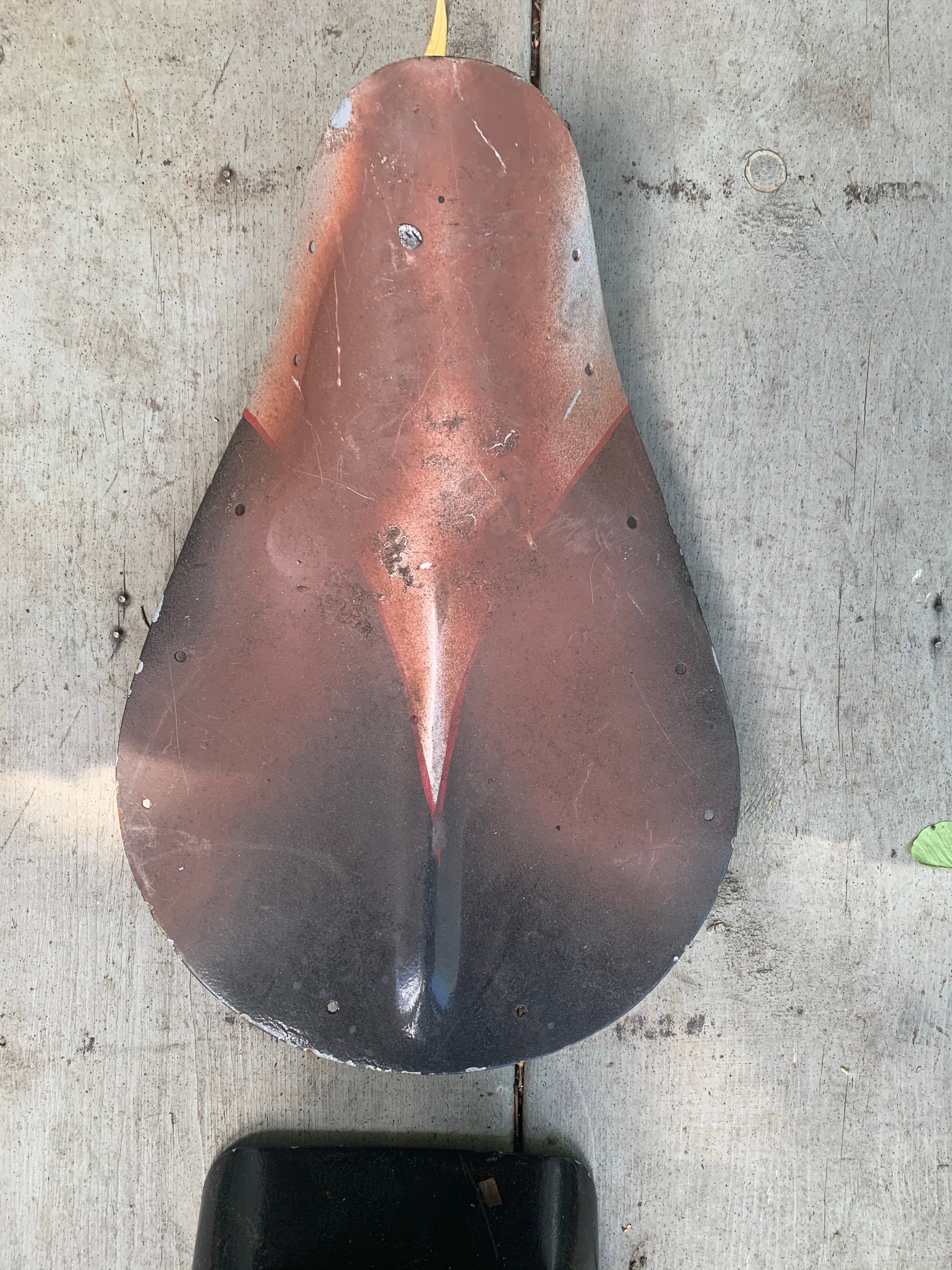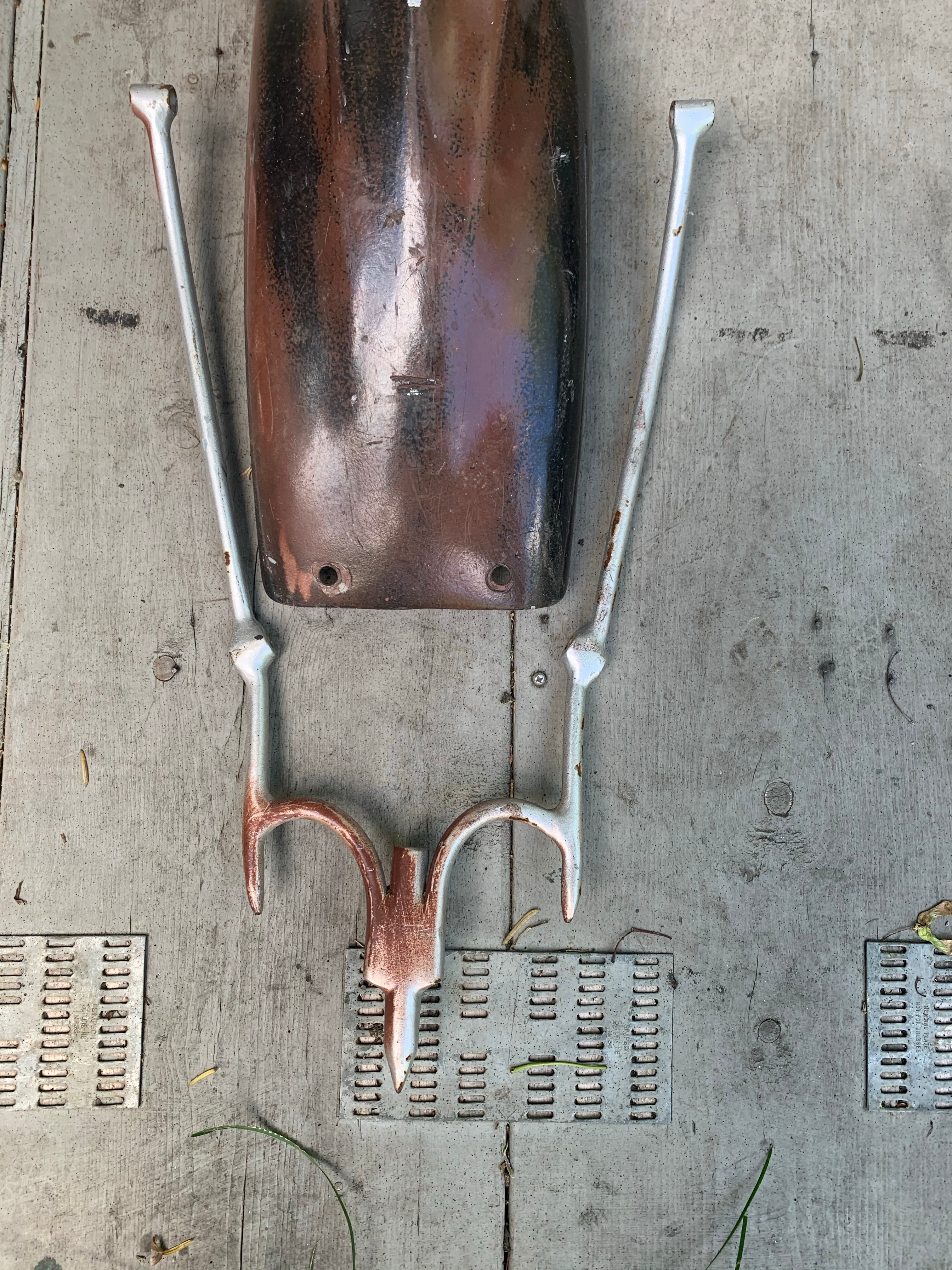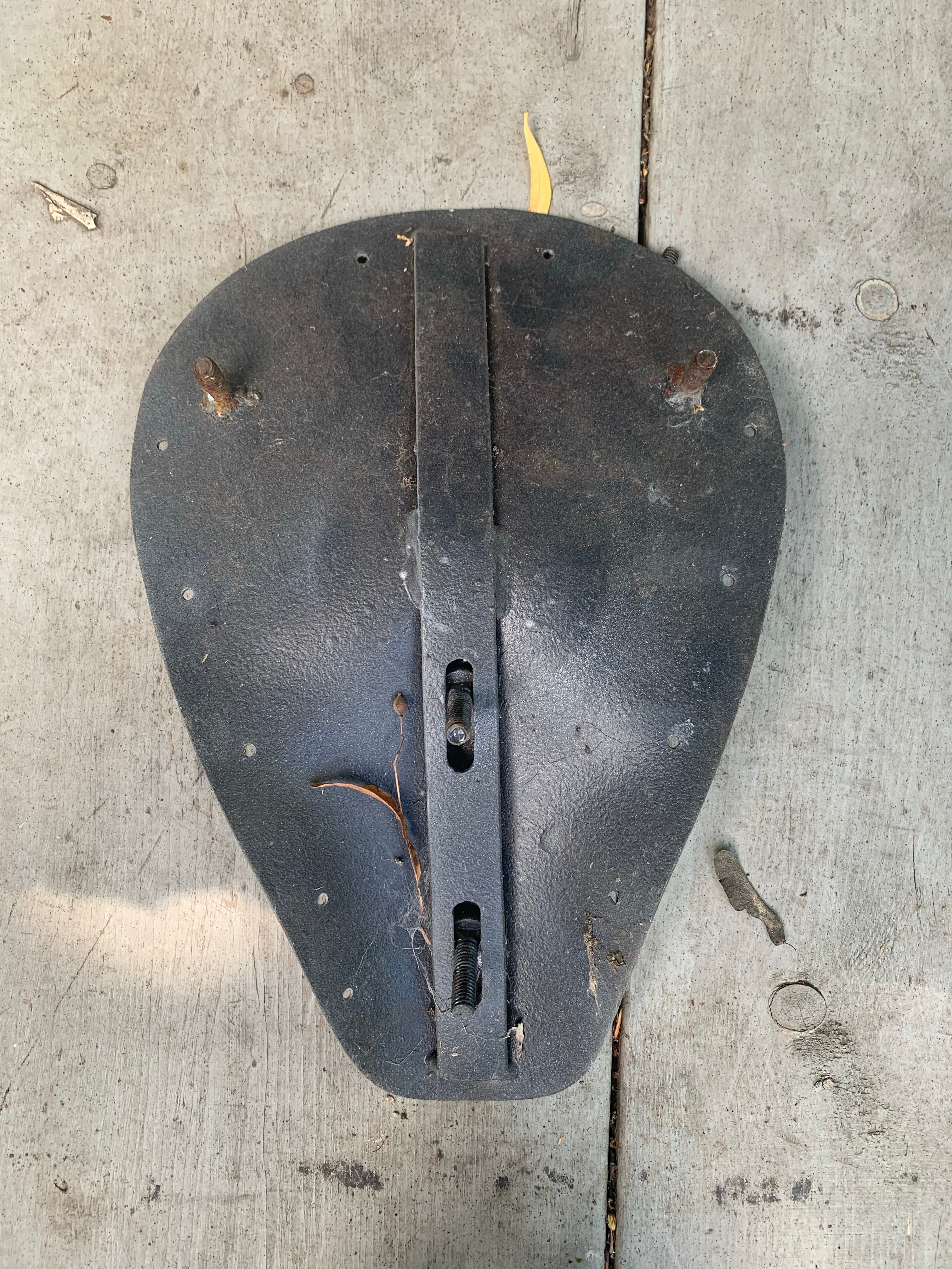 Custom fabricated by a guy here in NH whose name escapes me. Fabricated out of steel this thing has some weight to it. Not pictured are the seat springs. Custom chopper shit from good ol NH4DAMNSURE.
